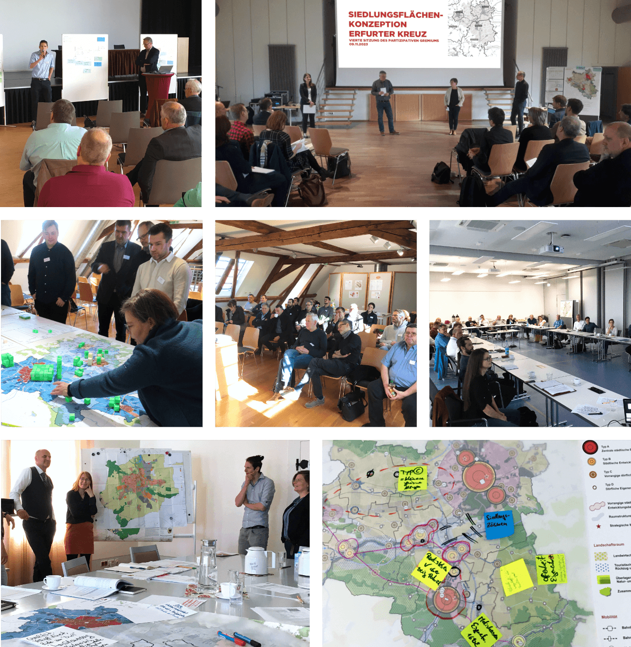 Sie bilden das sogenannte Partizipative Gremium und treffen zweimal im Jahr für gemeinsame Arbeitsrunden im Rahmen des Siedlungsflächendialogs Erfurter Kreuz zusammen.