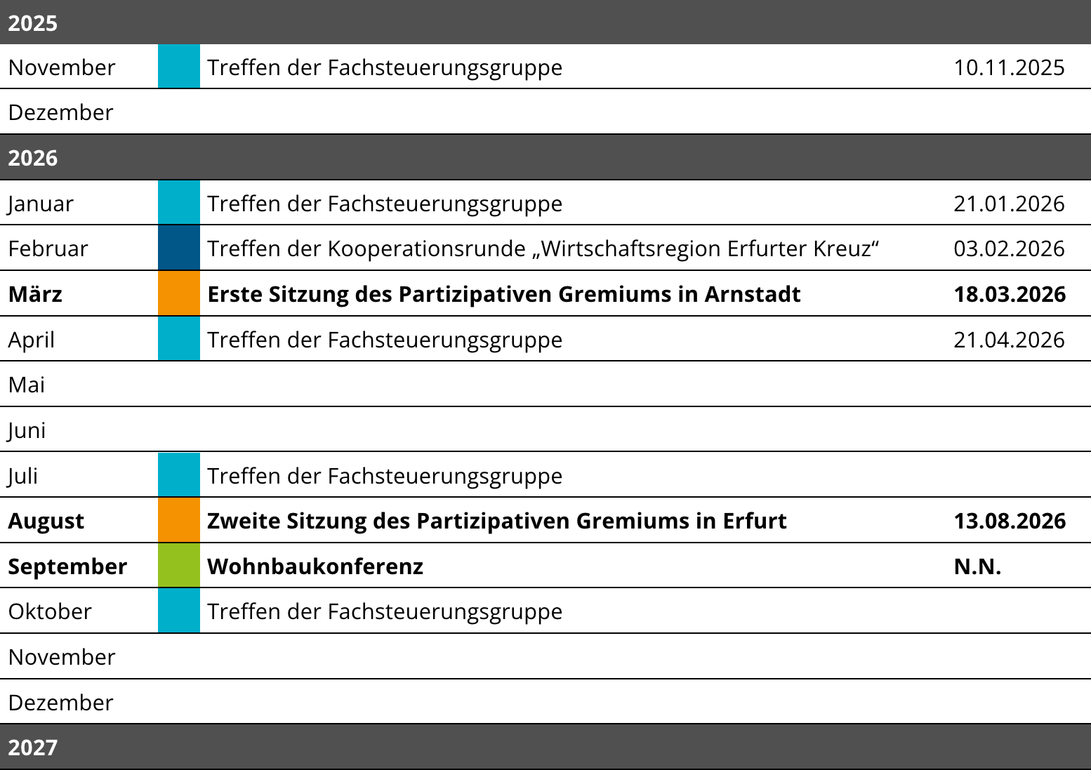 In dieser Übersicht finden Sie alle aktuellen Termine des Siedlungsflächendialogs Erfurter Kreuz.